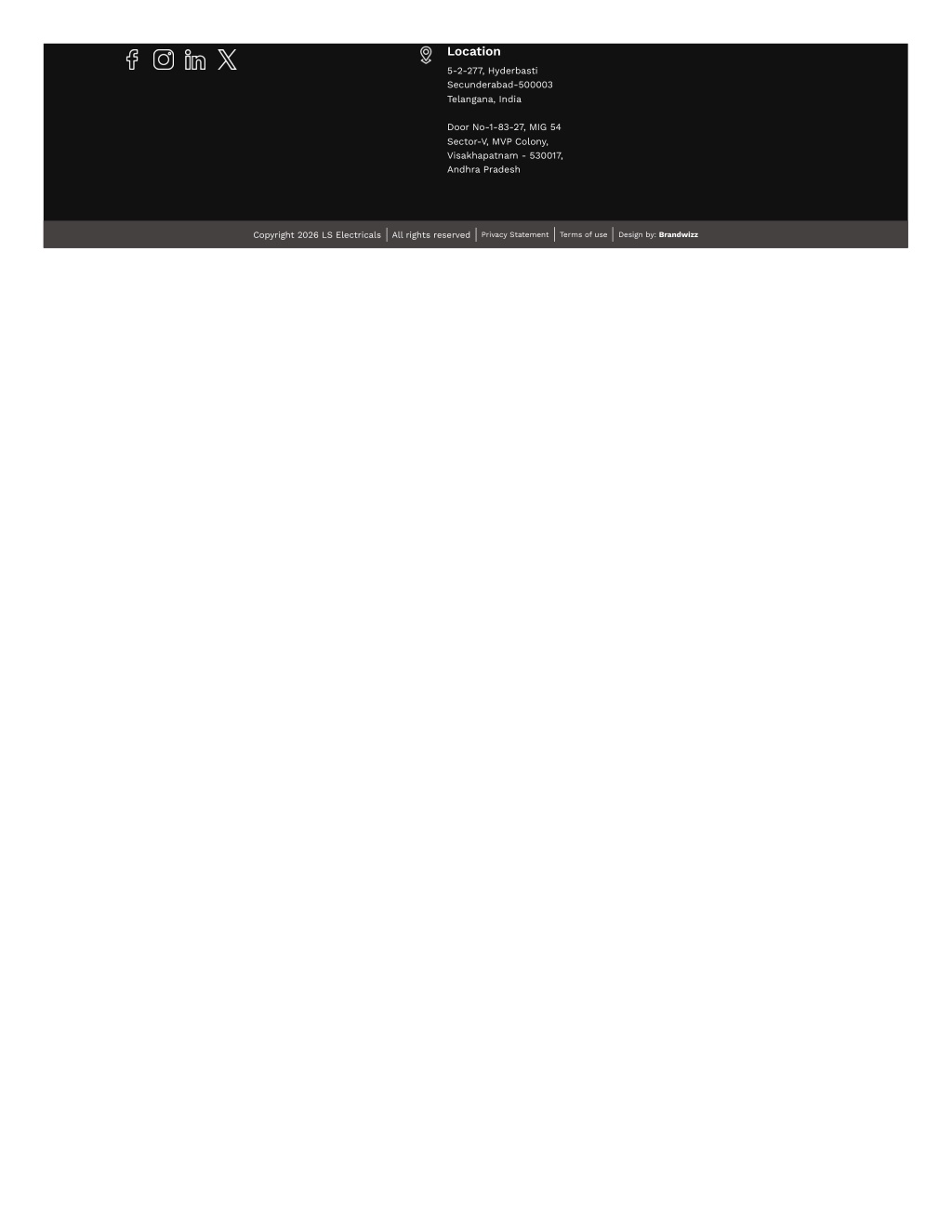 Location 5-2-277,Hyderbasti Secunderabad-500003 Telangana,India DoorNo-1-83-27,MIG54 Sector-V,MVPColony, Visakhapatnam-530017, AndhraPradesh Copyright2026LSElectricals Allrightsreserved PrivacyStatement Termsofuse Designby:Brandwizz