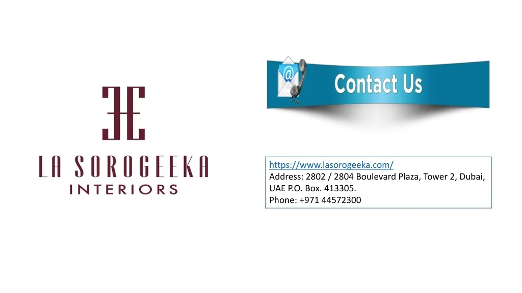 https://www.lasorogeeka.com/ Address: 2802 / 2804 Boulevard Plaza, Tower 2, Dubai, UAE P.O. Box. 413305. Phone: +971 44572300