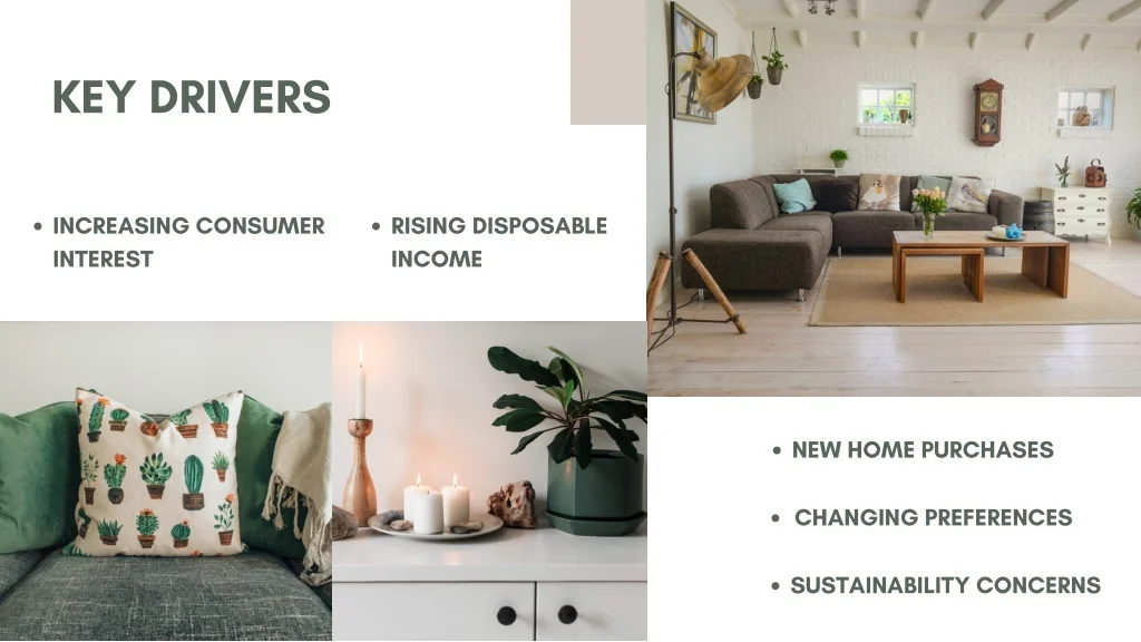 KEY DRIVERS INCREASING CONSUMER INTEREST RISING DISPOSABLE INCOME NEW HOME PURCHASES CHANGING PREFERENCES SUSTAINABILITY CONCERNS