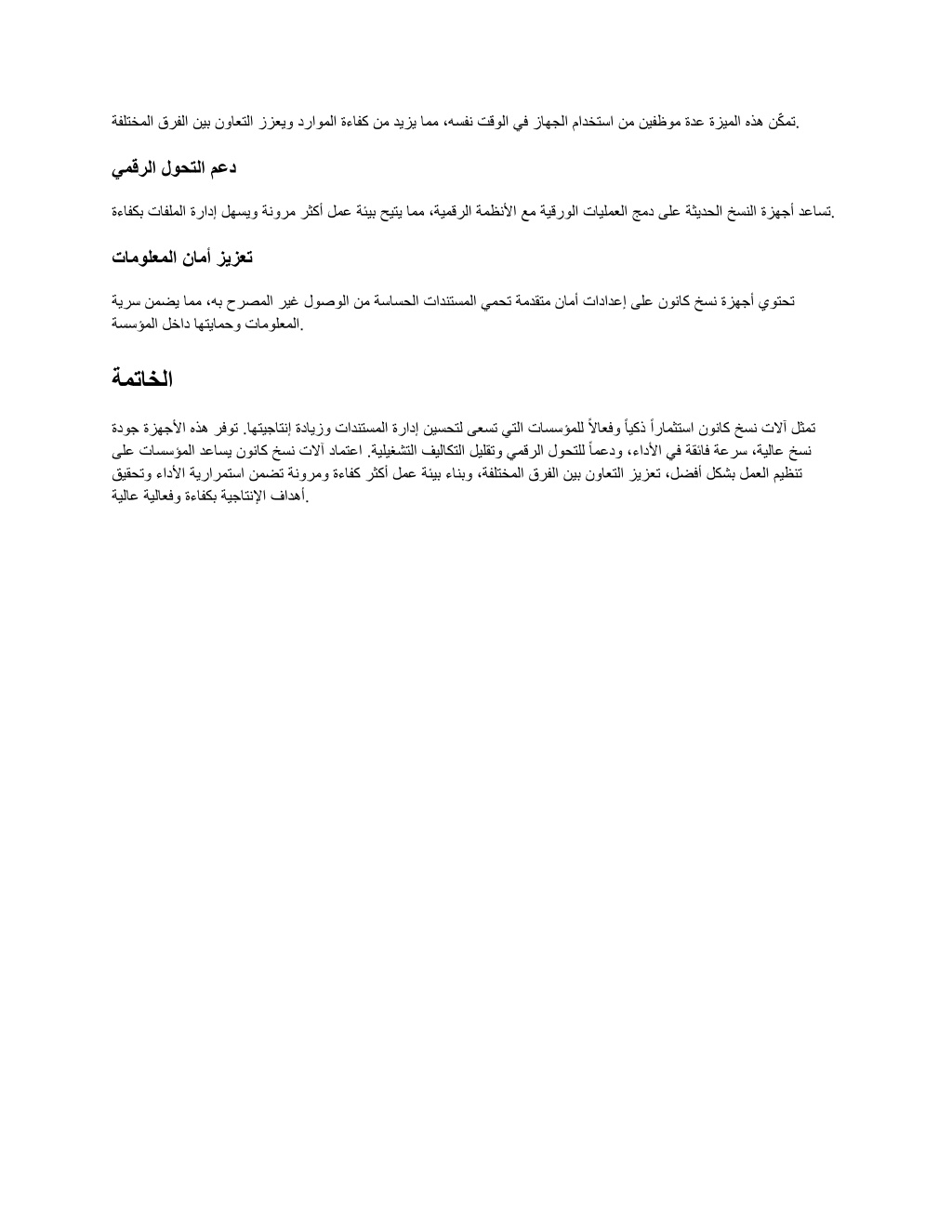 u062au0648u0641u0631 u0622u0644u0627u062a u0646u0633u062e u0643u0627u0646u0648u0646 u062cu0648u062fu0629 u0646u0633u062e u0639u0627u0644u064au0629 u0648u0633u0631u0639u0629 u0641u0627u0626u0642u0629u060c u0645u0639 u0645u064au0632u0627u062a u0630u0643u064au0629 u0644u0644u0637u0628u0627u0639u0629 u0648u0627u0644u0645u0633u062d u0627u0644u0636u0648u0626u064a u0639u0628u0631 u0627u0644u0634u0628u0643u0627u062au060c u0645u0627 u064au0633u0647u0644 u0625u062fu0627u0631u0629 u0627u0644u0645u0633u062au0646u062fu0627u062a u0648u0645u0634u0627u0631u0643u062au0647u0627 u0628u064au0646 u0627u0644u0623u0642u0633u0627u0645 u0627u0644u0645u062eu062au0644u0641u0629. u062au0633u0627u0639u062f u0647u0630u0647 u0627u0644u0623u062cu0647u0632u0629 u0641u064a u062au062du0633u064au0646 u0625u0646u062au0627u062cu064au0629 u0627u0644u0645u0648u0638u0641u064au0646u060c u062au0642u0644u064au0644 u0627u0644u0623u062eu0637u0627u0621u060c u0648u062eu0641u0636 u0627u0644u062au0643u0627u0644u064au0641 u0627u0644u062au0634u063au064au0644u064au0629u060c u0645u0645u0627 u064au062cu0639u0644u0647u0627 u0627u0644u062eu064au0627u0631 u0627u0644u0623u0645u062bu0644 u0644u0644u0645u0624u0633u0633u0627u062a u0627u0644u062au064a u062au0633u0639u0649 u0644u062au0639u0632u064au0632 u0643u0641u0627u0621u0629 u0627u0644u0639u0645u0644 u0648u062au0646u0638u064au0645 u0628u064au0626u0629 u0627u0644u0645u0643u062au0628.
