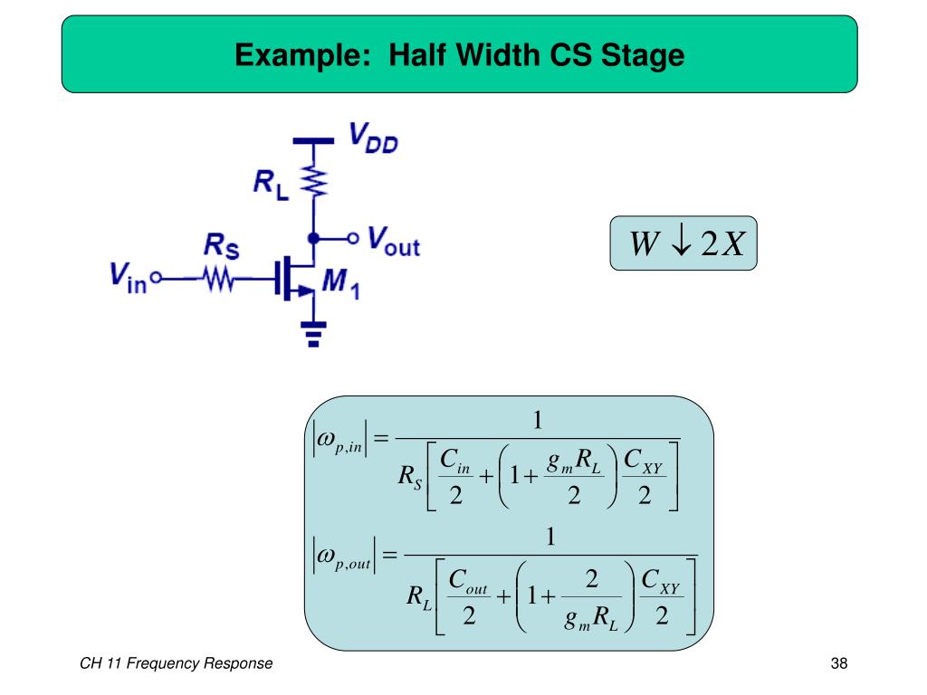 Example: CE Stage • The input pole is the bottleneck for speed. CH 11 Frequency Response 37