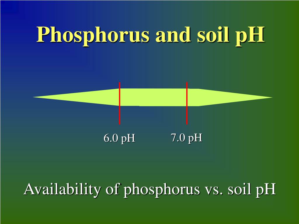 Phosphorus and soil pH 7.0 pH 6.0 pH Availability of phosphorus vs. soil pH