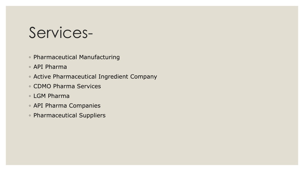 Services- • Pharmaceutical Manufacturing • API Pharma • Active Pharmaceutical Ingredient Company • CDMO Pharma Services • LGMPharma • API Pharma Companies • Pharmaceutical Suppliers