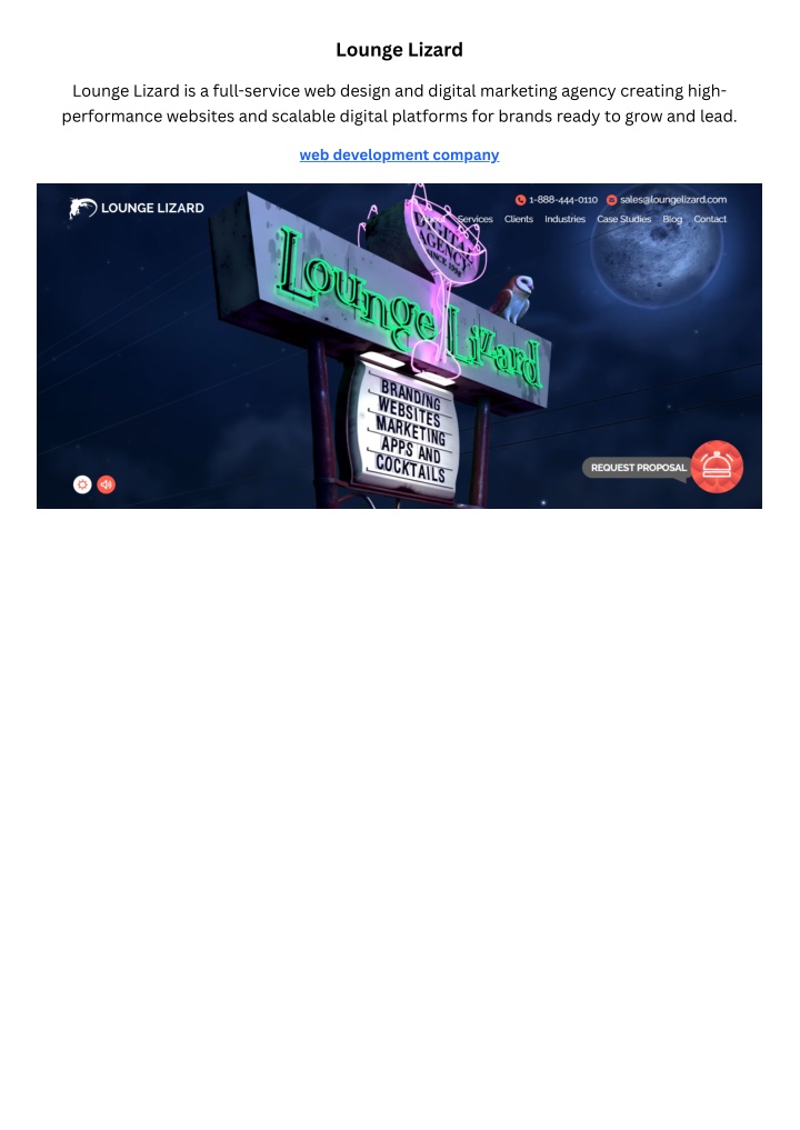 Lounge Lizard Lounge Lizard is a full-service web design and digital marketing agency creating high- performance websites and scalable digital platforms for brands ready to grow and lead. web development company