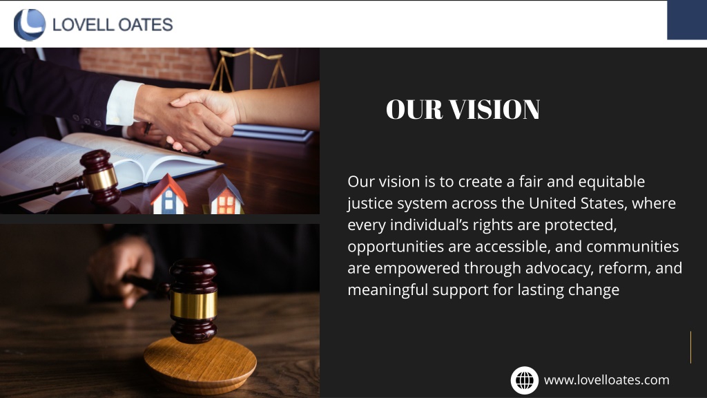 OUR VISION Our vision is to create a fair and equitable justice system across the United States, where every individual’s rights are protected, opportunities are accessible, and communities are empowered through advocacy, reform, and meaningful support for lasting change www.lovelloates.com
