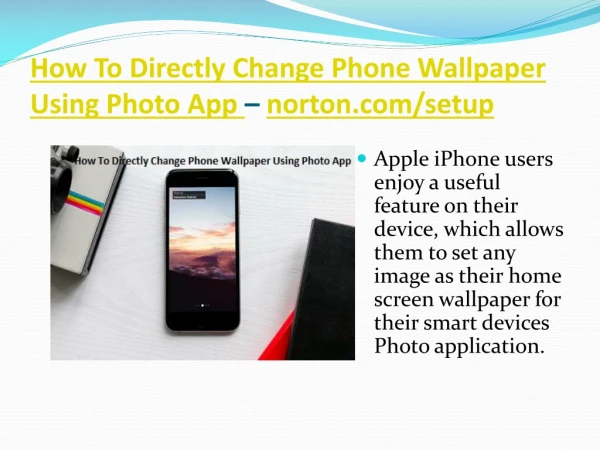 How To Directly Change Phone Wallpaper Using Photo App – norton.com/setup • Apple iPhone users enjoy a useful feature on their device, which allows them to set any image as their home screen wallpaper for their smart devices Photo application.