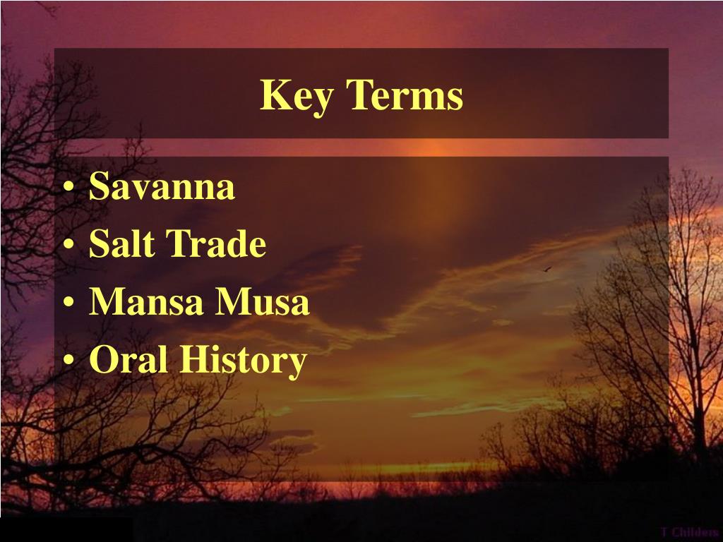 Key Terms • Savanna • Salt Trade • Mansa Musa • Oral History