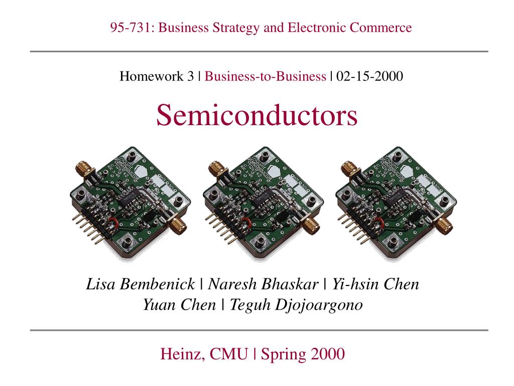 Semiconductors 95-731: Business Strategy and Electronic Commerce Homework 3 | Business-to-Business | 02-15-2000 • Lisa Bembenick | Naresh Bhaskar | Yi-hsin Chen Yuan Chen | Teguh Djojoargono • Heinz, CMU | Spring 2000