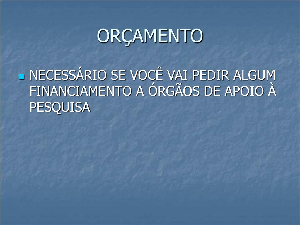 ORÇAMENTO • NECESSÁRIO SE VOCÊ VAI PEDIR ALGUM FINANCIAMENTO A ÓRGÃOS DE APOIO À PESQUISA