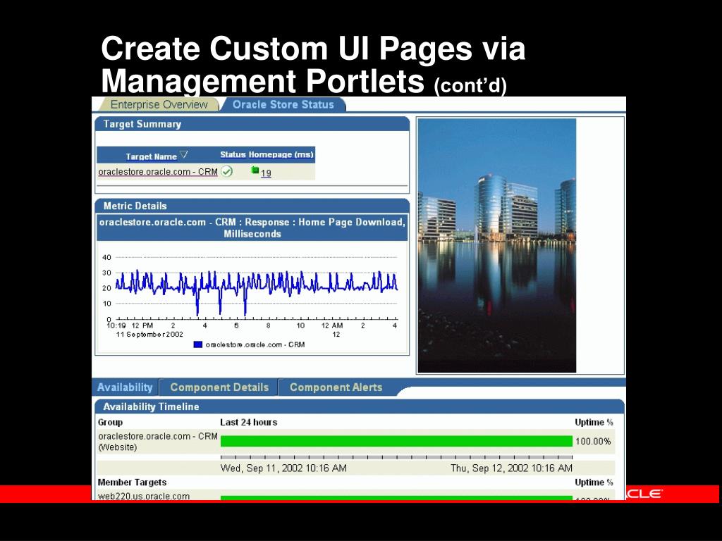 EM 4.0 Framework (2) • Intelligent Automation • Automatic Problem Diagnostics • Open and Extensible • Easy SDK, 1-hour integration, standards • Intimate Connection to Oracle • EM Metalink • EM Embedded Best practices