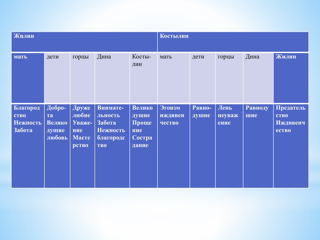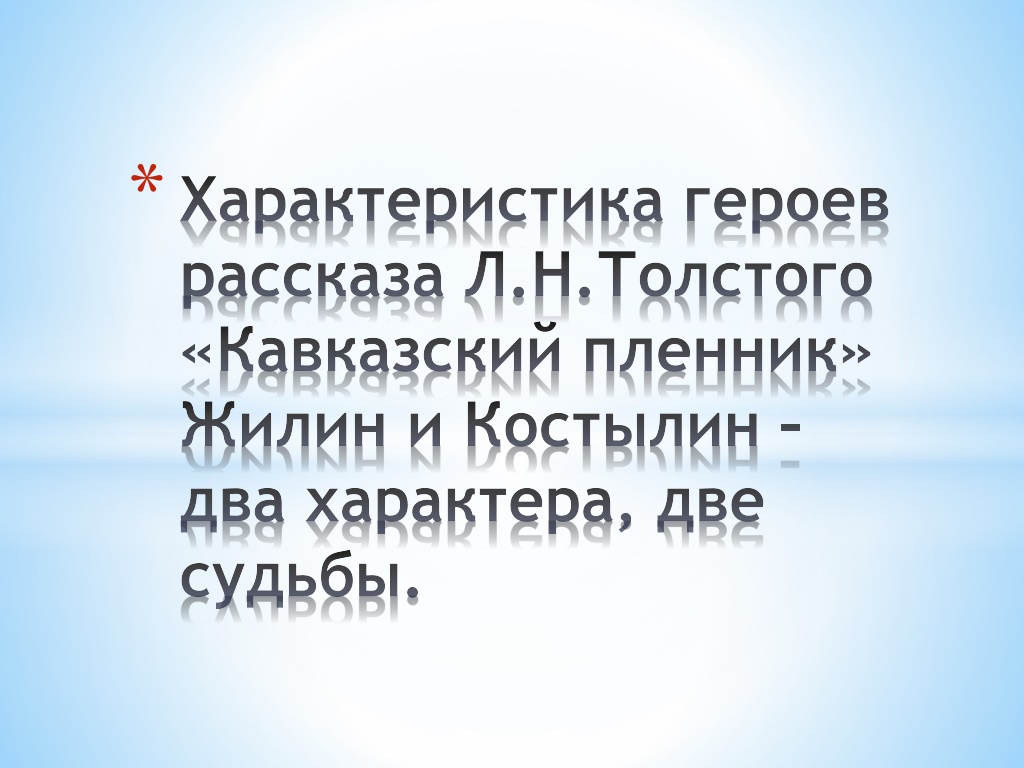 Характеристика героев рассказа Л.Н.Толстого«Кавказский пленник»Жилин и Костылин – два характера, две судьбы.
