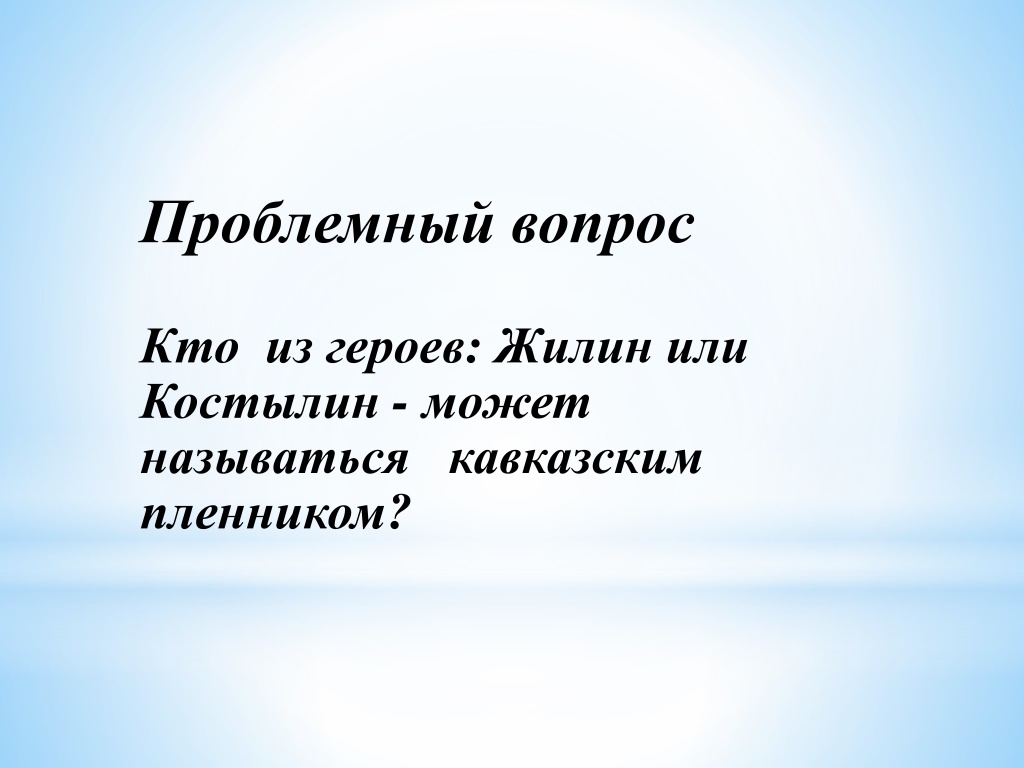 Проблемный вопрос Кто из героев: Жилин или Костылин - может называться кавказским пленником?