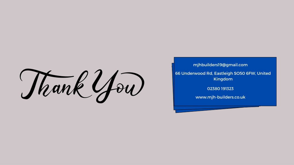 mjhbuilders19@gmail.com 66 Underwood Rd, Eastleigh SO50 6FW, United Kingdom 02380 191323 www.mjh-builders.co.uk
