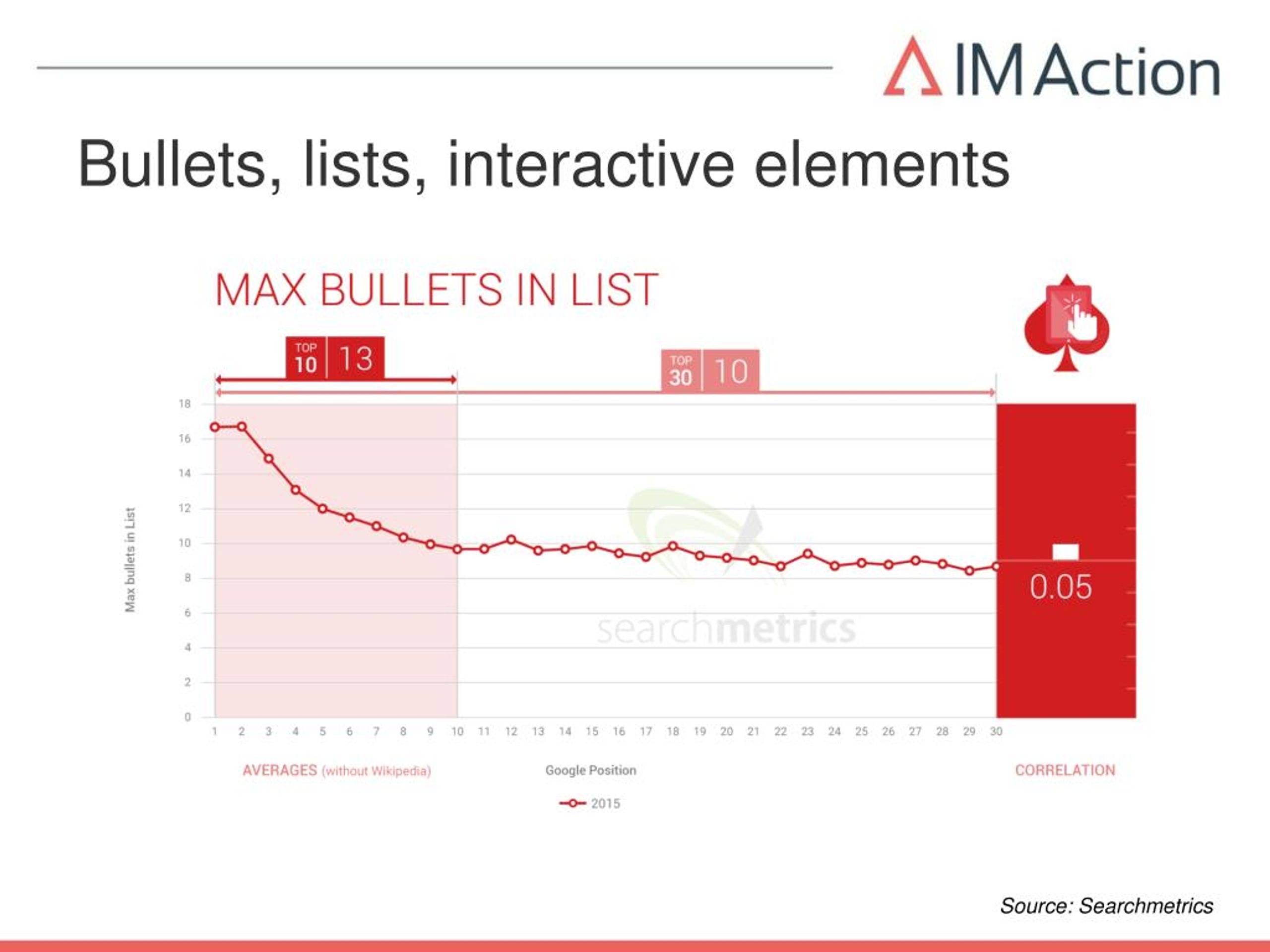 Bullets, lists, interactive elements Source: Searchmetrics