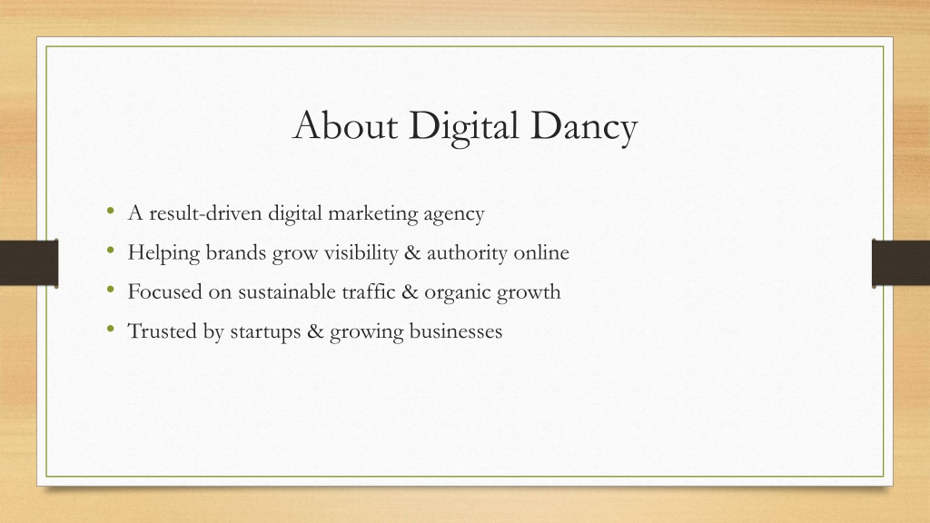 2. About Digital Dancy • A result-driven digital marketing agency • Helping brands grow visibility & authority online • Focused on sustainable traffic & organic growth • Trusted by startups & growing businesses
