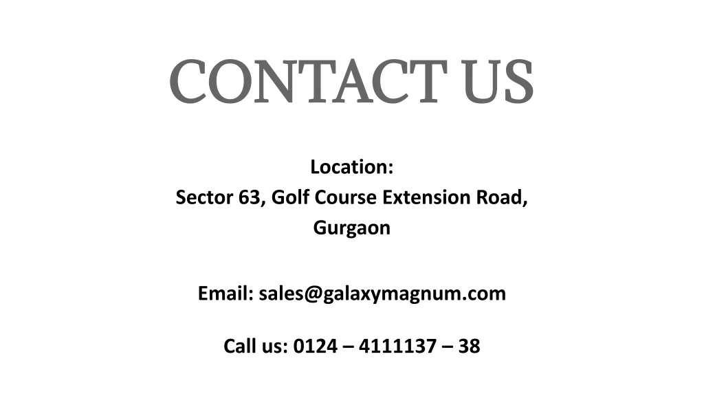 CONTACT US Location: Sector 63, Golf Course Extension Road, Gurgaon Email: sales@galaxymagnum.com Call us: 0124 – 4111137 – 38