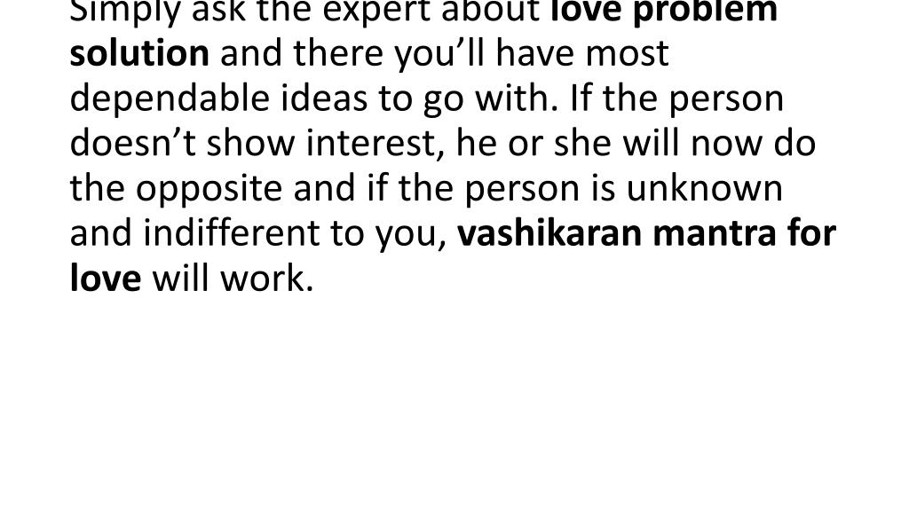 And in case, you have somebody on your mind but don’t know how to get him or her, there are special remedies for that too. Simply ask the expert about love problem solution and there you’ll have most dependable ideas to go with. If the person doesn’t show interest, he or she will now do the opposite and if the person is unknown and indifferent to you, vashikaran mantra for love will work.