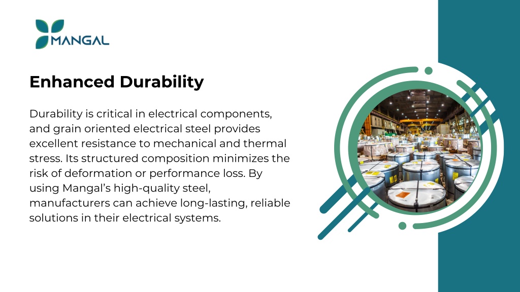 Enhanced Durability Durability is critical in electrical components, and grain oriented electrical steel provides excellent resistance to mechanical and thermal stress. Its structured composition minimizes the risk of deformation or performance loss. By using Mangal’s high-quality steel, manufacturers can achieve long-lasting, reliable solutions in their electrical systems.