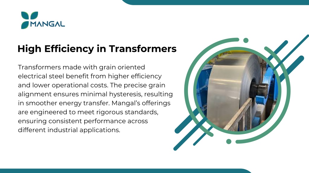 High Efficiency in Transformers Transformers made with grain oriented electrical steel benefit from higher efficiency and lower operational costs. The precise grain alignment ensures minimal hysteresis, resulting in smoother energy transfer. Mangal’s offerings are engineered to meet rigorous standards, ensuring consistent performance across different industrial applications.