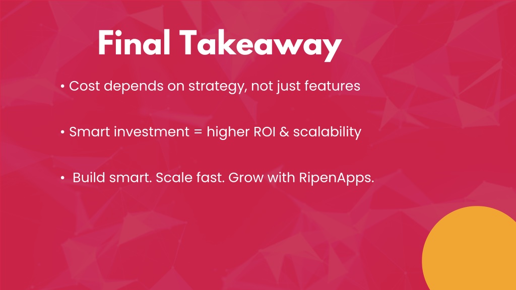 Final Takeaway • Cost depends on strategy, not just features • Smart investment = higher ROI & scalability • Build smart. Scale fast. Grow with RipenApps.