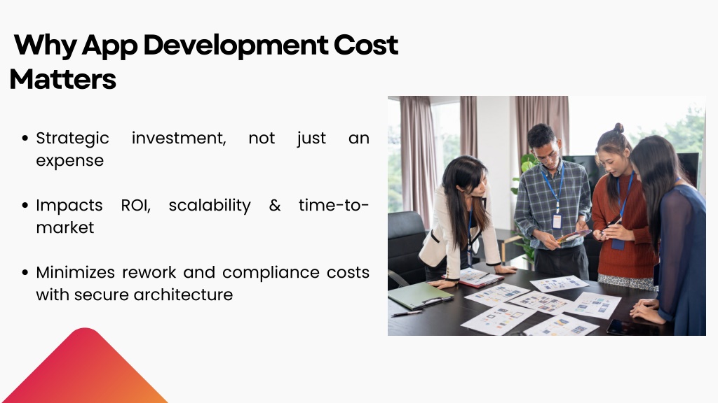 Why App Development Cost Matters Strategic expense investment, not just an Impacts ROI, scalability & time-to- market Minimizes rework and compliance costs with secure architecture