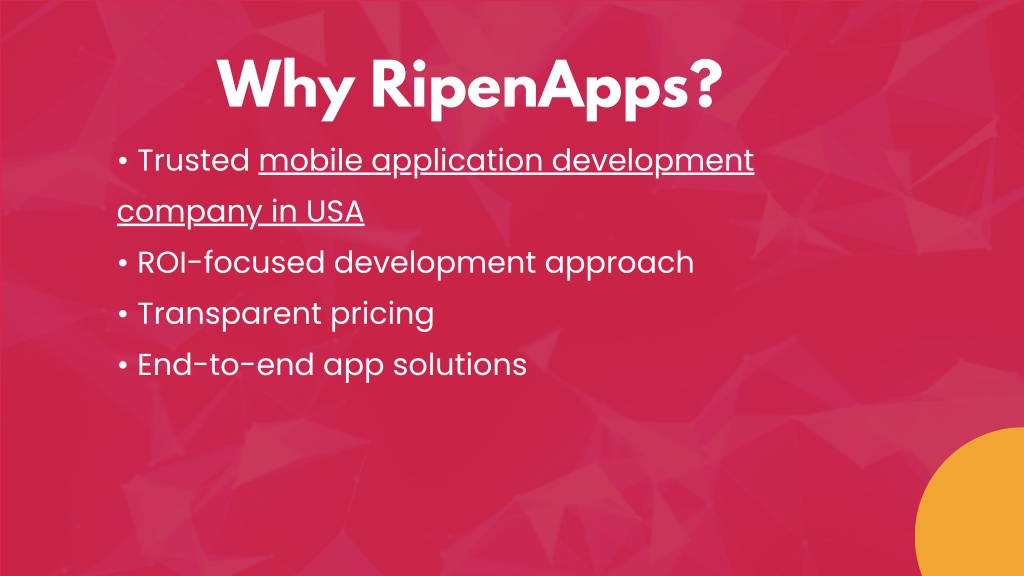 Why RipenApps? • Trusted mobile application development company in USA • ROI-focused development approach • Transparent pricing • End-to-end app solutions