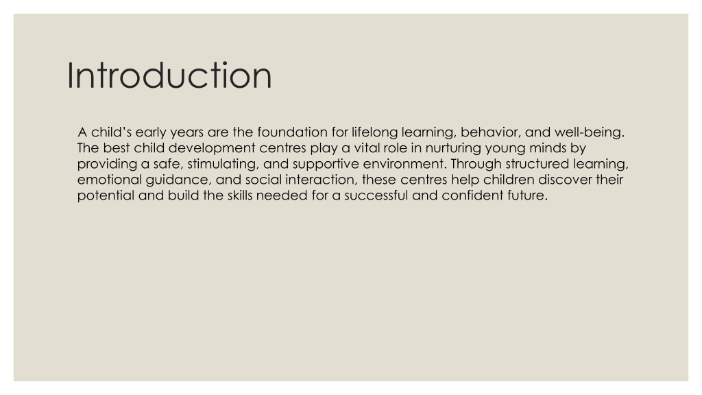 Coclusion The best child development centre does more than educate—it shapes character, confidence, and capabilities. By fostering a love for learning, supporting emotional growth, and building essential life skills, these centres lay a strong foundation for a brighter future. Investing in quality child development today ensures empowered, capable, and successful individuals tomorrow.