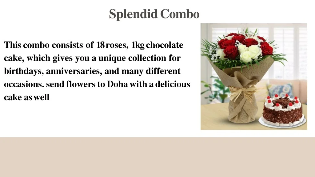 SplendidCombo This combo consists of 18 roses, 1kg chocolate cake, which gives you a unique collection for birthdays, anniversaries, and many different occasions.sendflowerstoDohawithadelicious cake aswell