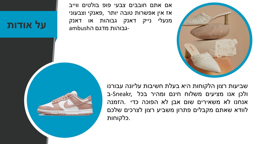 אם אתם חובבים צבעי פופ בולטים ווייב פאנקי וצבעוני, אז אין אפשרות טובה יותר מנעלי נייק דאנק גבוהות או דאנק ambushגבוהות מדגם ה- על אודות שביעות רצון הלקוחות היא בעלת חשיבות עליונה עבורנו ב-Sneakr, ולכן אנו מציעים משלוח חינם ומהיר בכל הזמנה. אנחנו לא משאירים שום אבן לא הפוכה כדי לוודא שאתם מקבלים פתרון משביע רצון לצרכים שלכם כלקוחות.