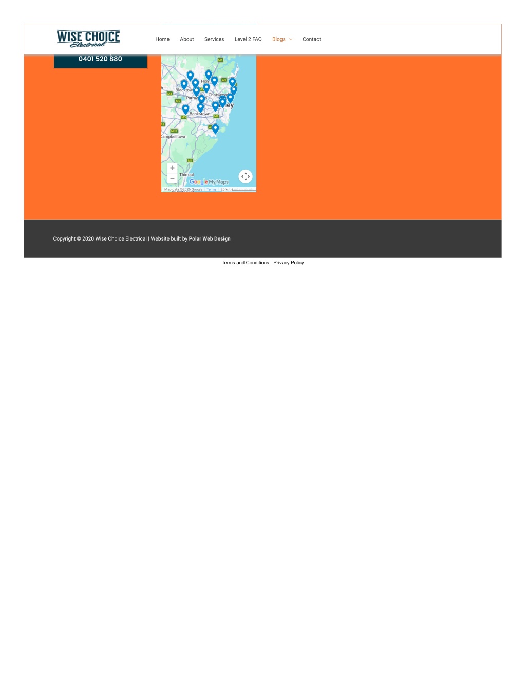 Contact Wise Ch… About Home Services Level 2 FAQ Blogs Contact About GET A FREE QUOTE: 0401 520 880 Map data ©2026 Google Terms Keyboard shortcuts 20 km This map was created by a user Learn how to Copyright © 2020 Wise Choice Electrical | Website built by Polar Web Design Terms and Conditions - Privacy Policy