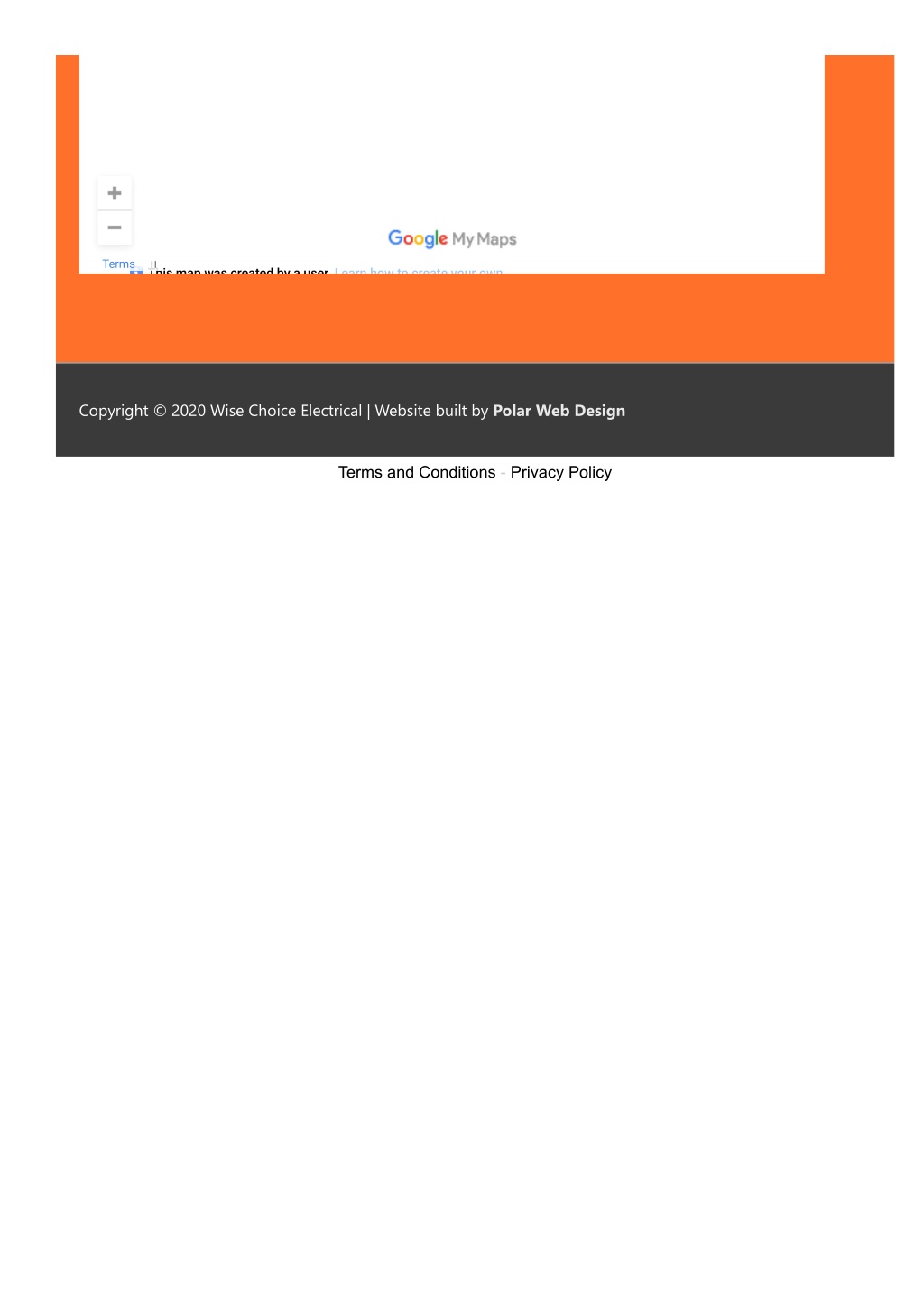 7. Terms This map was created by a user Learn how to create your own Copyright © 2020 Wise Choice Electrical | Website built by Polar Web Design Terms and Conditions - Privacy Policy