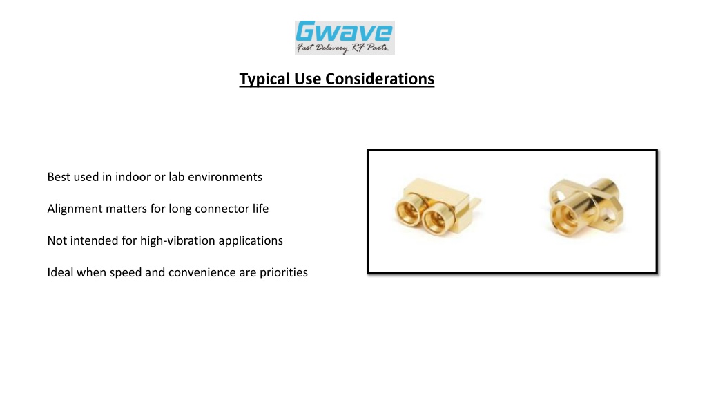Typical Use Considerations Best used in indoor or lab environments Alignment matters for long connector life Not intended for high-vibration applications Ideal when speed and convenience are priorities