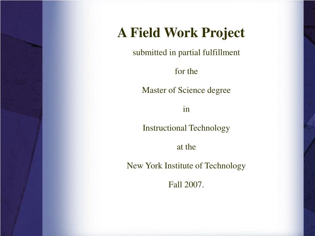 A Field Work Project submitted in partial fulfillment for the Master of Science degree in Instructional Technology at the New York Institute of Technology Fall 2007.