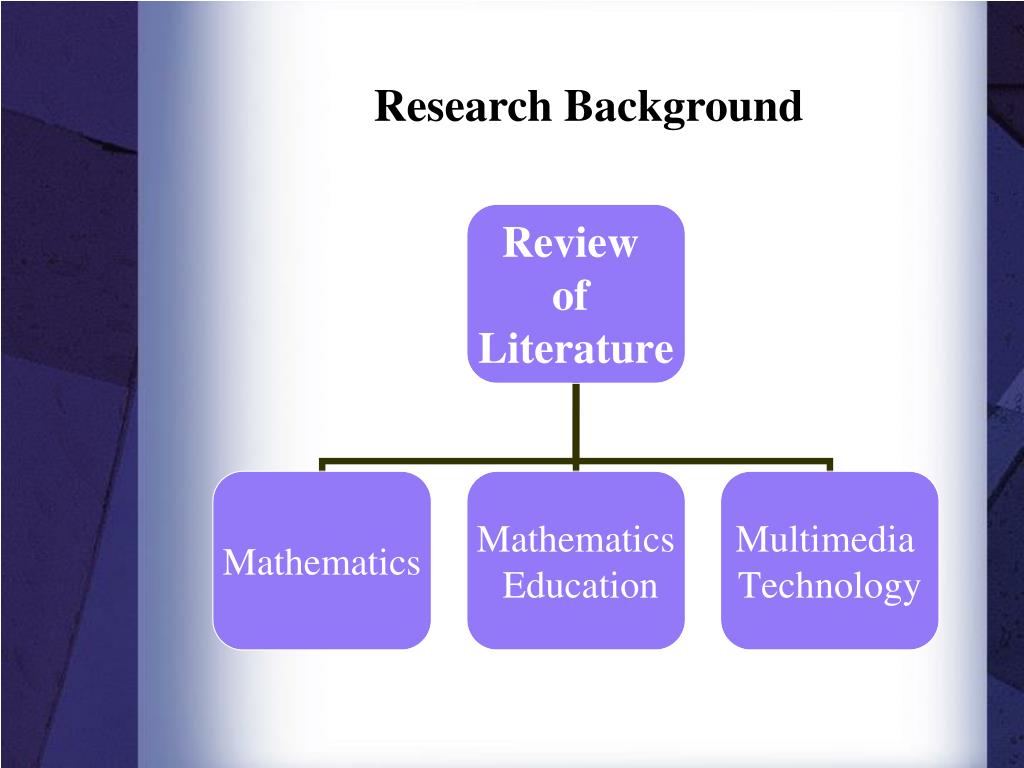 Review of Literature • Mathematics – A discipline defined by the types of problems it addresses, the methods it uses to address these problems, and the results it has achieved.1 • Mathematics Education in high school is far reaching, as students have to rely heavily on the fundamental mathematics taught during their earlier years at Pre-Kindergarten, Elementary, and Junior High Schools.2 • Multimedia Technology can be associated with education to coin the term Educational Technology. This is the study and ethical practice of facilitating learning and improving performance by creating, using, and managing appropriate technological processes and resources. 3