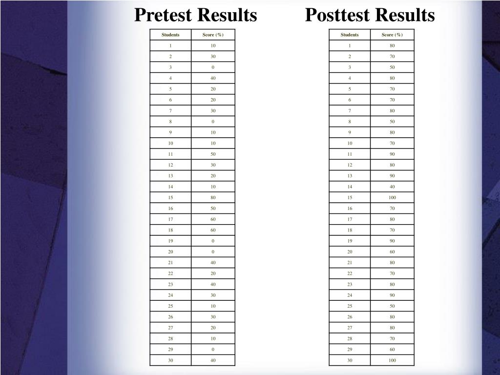 Pretest Results Posttest Results