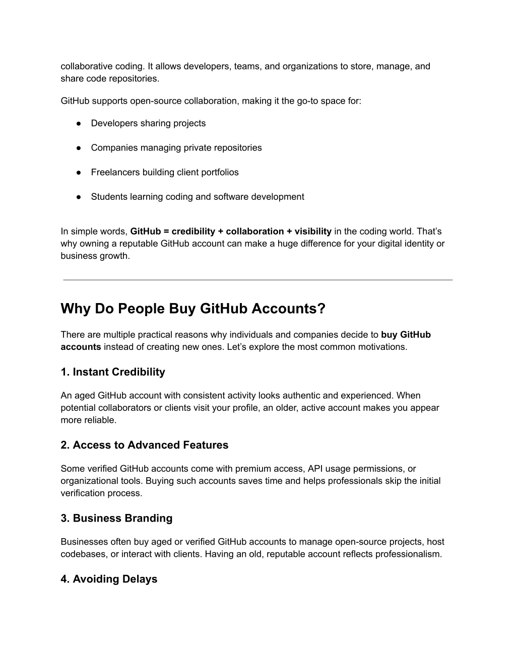 2. collaborative coding. It allows developers, teams, and organizations to store, manage, and share code repositories. GitHub supports open-source collaboration, making it the go-to space for: ● Developers sharing projects ● Companies managing private repositories ● Freelancers building client portfolios ● Students learning coding and software development In simple words, GitHub = credibility + collaboration + visibility in the coding world. That’s why owning a reputable GitHub account can make a huge difference for your digital identity or business growth. Why Do People Buy GitHub Accounts? There are multiple practical reasons why individuals and companies decide to buy GitHub accounts instead of creating new ones. Let’s explore the most common motivations. 1. Instant Credibility An aged GitHub account with consistent activity looks authentic and experienced. When potential collaborators or clients visit your profile, an older, active account makes you appear more reliable. 2. Access to Advanced Features Some verified GitHub accounts come with premium access, API usage permissions, or organizational tools. Buying such accounts saves time and helps professionals skip the initial verification process. 3. Business Branding Businesses often buy aged or verified GitHub accounts to manage open-source projects, host codebases, or interact with clients. Having an old, reputable account reflects professionalism. 4. Avoiding Delays