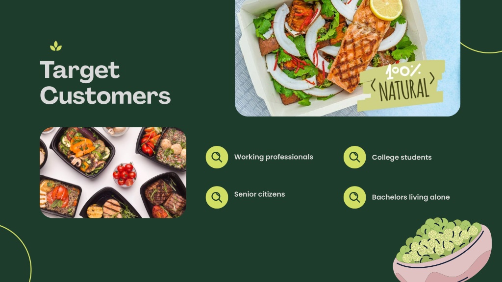 Target Customers Working professionals College students Senior citizens Bachelors living alone