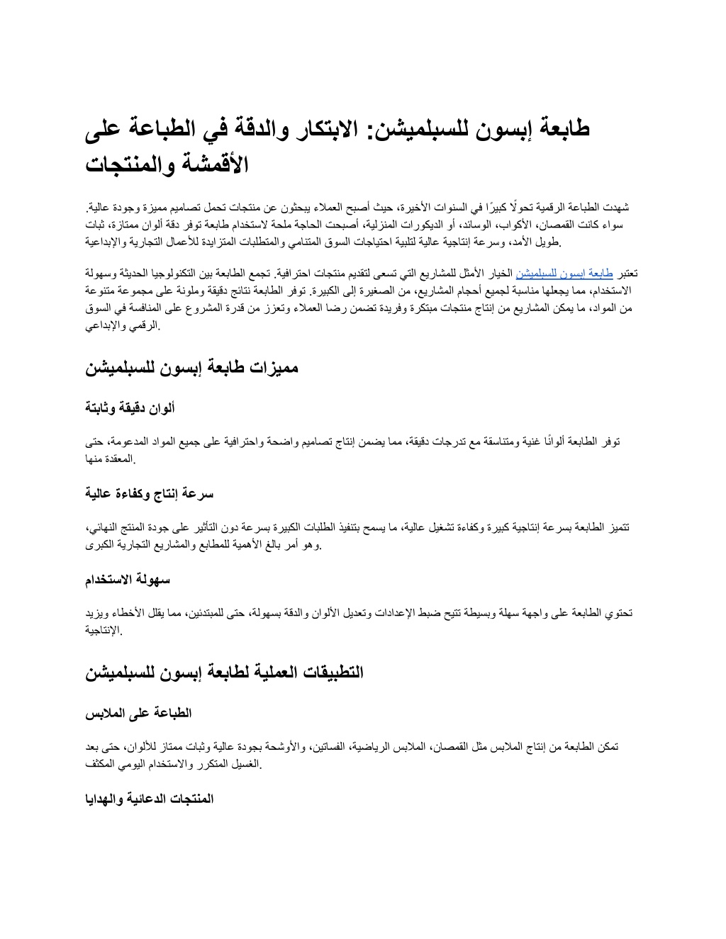 u062au0648u0641u0631 u0637u0627u0628u0639u0629 u0625u0628u0633u0648u0646 u0644u0644u0633u0628u0644u0645u064au0634u0646 u062cu0648u062fu0629 u0637u0628u0627u0639u0629 u0639u0627u0644u064au0629 u0648u062fu0642u0629 u0623u0644u0648u0627u0646 u062bu0627u0628u062au0629 u0639u0644u0649 u0627u0644u0623u0642u0645u0634u0629 u0648u0627u0644u0645u0646u062au062cu0627u062a u0627u0644u0645u062au0646u0648u0639u0629. u062au062au0645u064au0632 u0628u0633u0631u0639u0629 u0625u0646u062au0627u062cu064au0629 u0645u0645u062au0627u0632u0629 u0648u0633u0647u0648u0644u0629 u062au0634u063au064au0644u060c u0645u0627 u064au062cu0639u0644u0647u0627 u0627u0644u062eu064au0627u0631 u0627u0644u0623u0645u062bu0644 u0644u0644u0645u0634u0627u0631u064au0639 u0627u0644u062au062cu0627u0631u064au0629 u0648u0627u0644u0625u0628u062fu0627u0639u064au0629 u0627u0644u062au064a u062au0633u0639u0649 u0644u062au0642u062fu064au0645 u0645u0646u062au062cu0627u062a u0627u062du062au0631u0627u0641u064au0629 u062au0644u0628u064a u062au0648u0642u0639u0627u062a u0627u0644u0639u0645u0644u0627u0621 u0648u062au0639u0632u0632 u0627u0644u0642u062fu0631u0629 u0627u0644u062au0646u0627u0641u0633u064au0629 u0641u064a u0627u0644u0633u0648u0642 u0627u0644u0633u0639u0648u062fu064a.