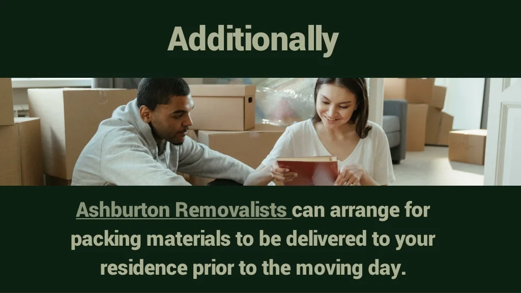 Additionally • Ashburton Removalists can arrange for packing materials to be delivered to your residence prior to the moving day.