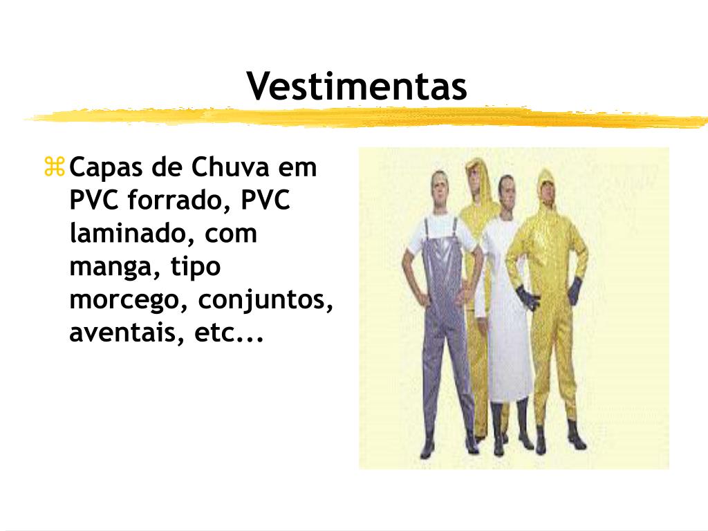 Vestimentas • Capas de Chuva em PVC forrado, PVC laminado, com manga, tipo morcego, conjuntos, aventais, etc...