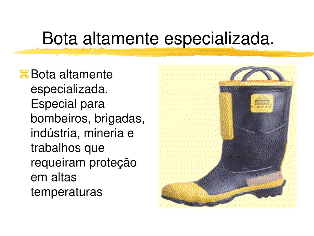 Bota altamente especializada. • Bota altamente especializada. Especial para bombeiros, brigadas, indústria, mineria e trabalhos que requeiram proteção em altas temperaturas