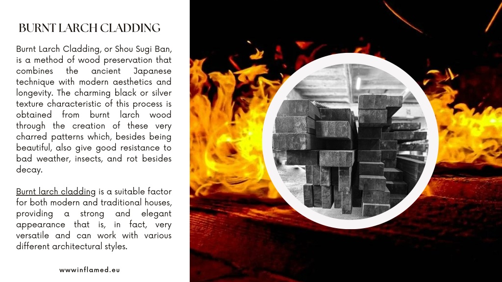 7. BURNT LARCH CLADDING Employer of Record Services Burnt Larch Cladding, or Shou Sugi Ban, is a method of wood preservation that combines the ancient Japanese technique with modern aesthetics and longevity. The charming black or silver texture characteristic of this process is obtained from burnt larch through the creation of these very charred patterns which, besides being beautiful, also give good resistance to bad weather, insects, and rot besides decay. wood Burnt larch cladding is a suitable factor for both modern and traditional houses, providing a strong appearance that is, in fact, very versatile and can work with various different architectural styles. and elegant wwwinflamed.eu