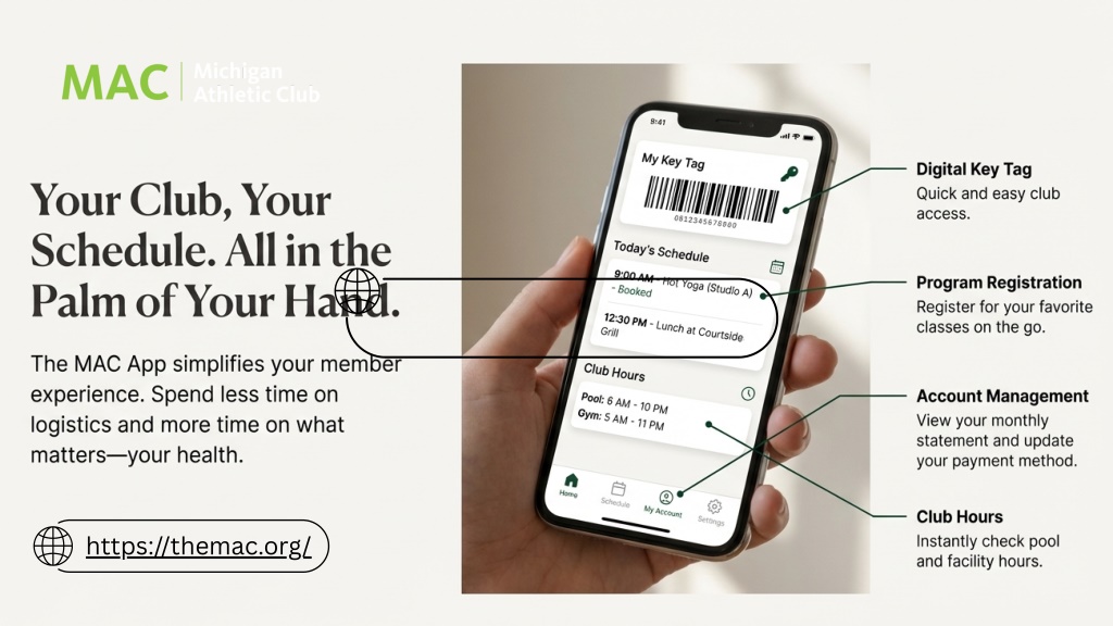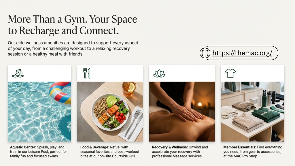 Explore the Michigan Athletic Club in East Lansing, a premier destination for those seeking Athletic Clubs in Michigan with extensive gym and wellness facilities. This presentation outlines the club's all-in-one amenities, featuring elite services such as massage, recovery options, and the Courtside Grill for post-workout nutrition. Learn about membership perks that include access to diverse programs ranging from aquatics, tennis, and pickleball to yoga and dedicated youth activities.
