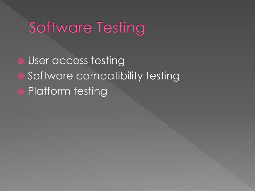 Software Testing • User access testing • Software compatibility testing • Platform testing
