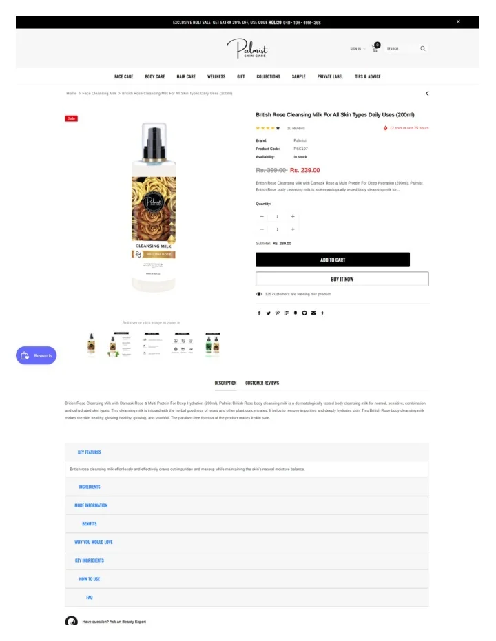 Roses and other plant concentrates are used to infuse this cleaning milk with their herbal sweetness. It aids in the removal of pollutants and moisturises the skin profoundly. The skin is healthy, radiant, and youthful after using this British Rose body cleaning milk. The product's paraben-free composition is gentle on the skin.