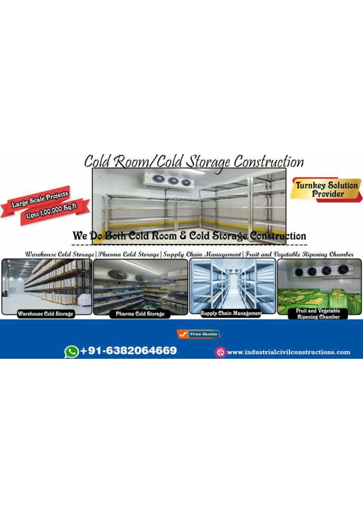 Cold Room Storage Builders in Chennai | Kanchipuram | Trichy | Madurai | Tada Sricity | India