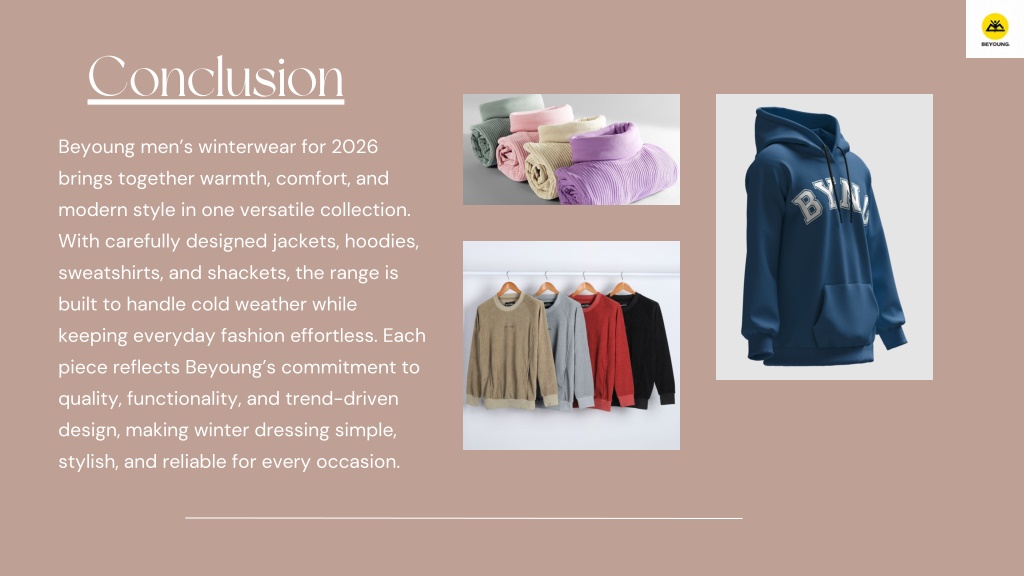 5. Conclusion Beyoung men’s winterwear for 2026 brings together warmth, comfort, and modern style in one versatile collection. With carefully designed jackets, hoodies, sweatshirts, and shackets, the range is built to handle cold weather while keeping everyday fashion effortless. Each piece reflects Beyoung’s commitment to quality, functionality, and trend-driven design, making winter dressing simple, stylish, and reliable for every occasion.