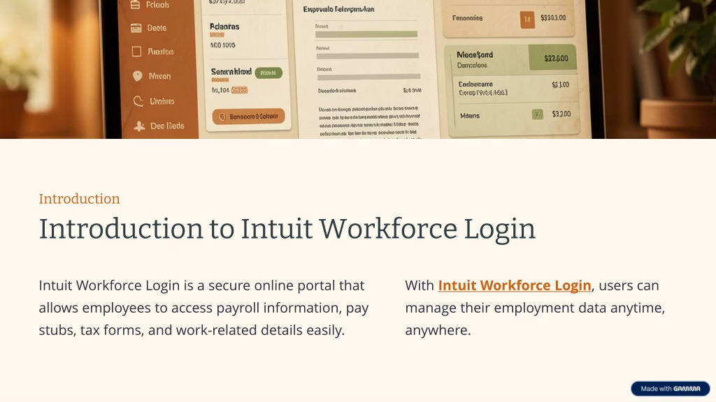 2. Introduction Introduction to Intuit Workforce Login Intuit Workforce Login is a secure online portal that allows employees to access payroll information, pay stubs, tax forms, and work-related details easily. With Intuit Workforce Login, users can manage their employment data anytime, anywhere.