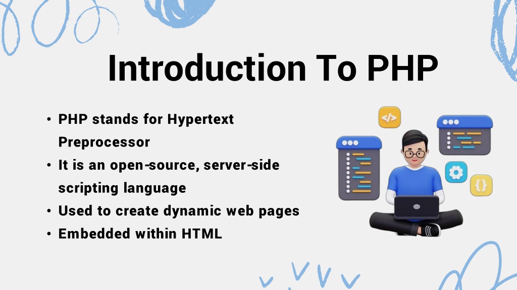 Created by Rasmus Lerdorf in 1994 PHP = Hypertext Preprocessor • History Of PHP Continuously updated and widely used Originally stood for “Personal Home Page”