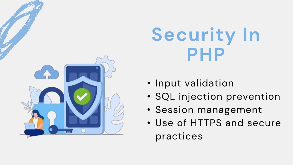 Security In PHP • Input validation • SQL injection prevention • Session management • Use of HTTPS and secure practices